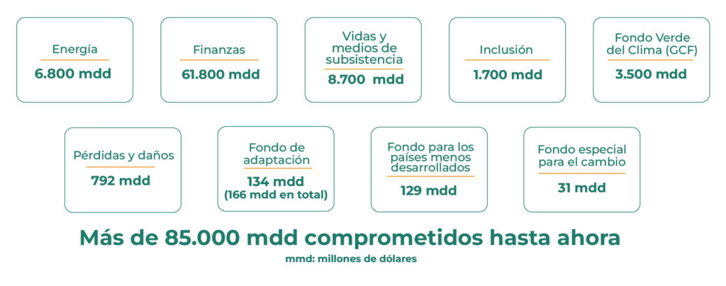 Sumando con este fondo, la COP28 concluyó con 85 mil millones de dólares de compromisos adicionales para las finanzas climáticas: